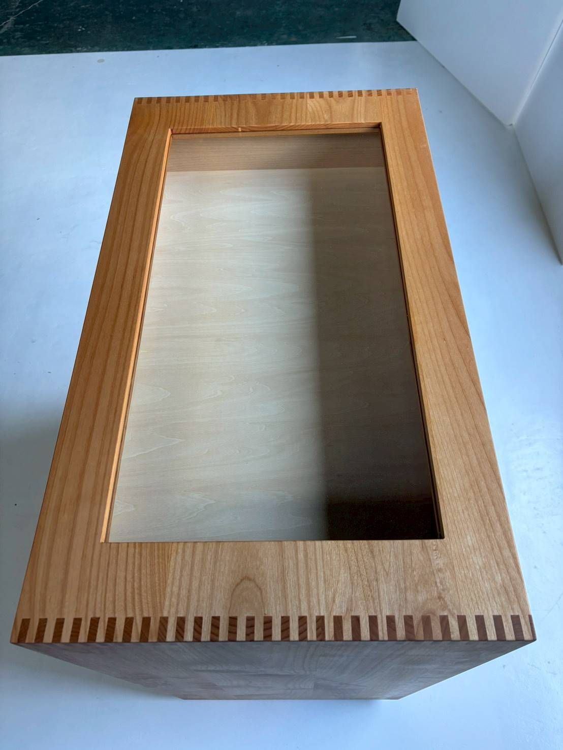 このガラス天板の棚にお客様がどんなお気に入りを並べられるのか。思わず想像したくなる1台です。