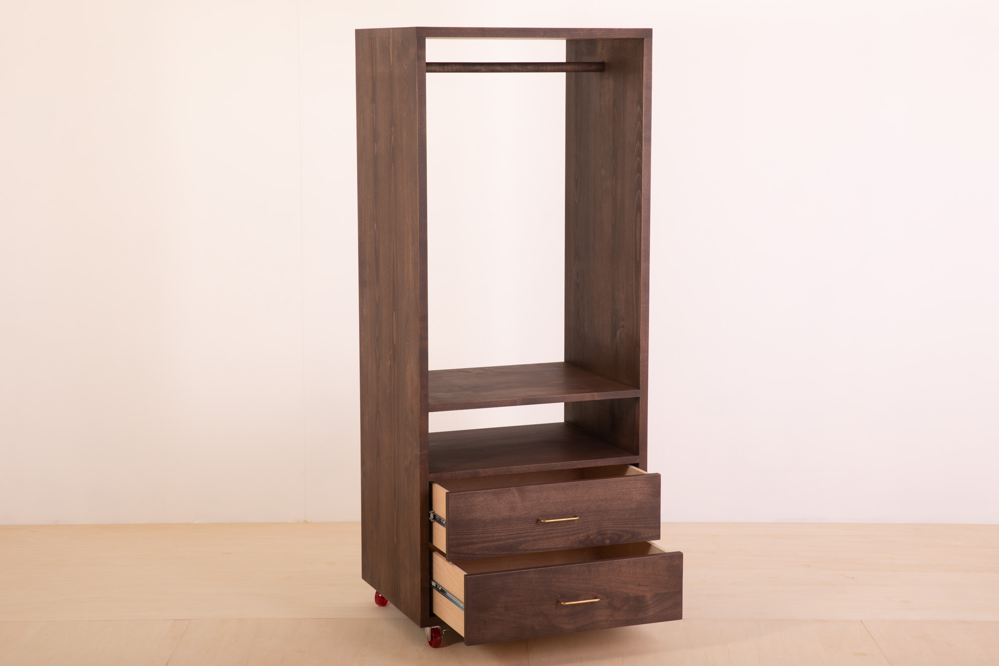 服を掛けれる収納家具になります。見える部分、隠す部分、メリハリがありシンプルなデザインでお部屋に馴染みます。