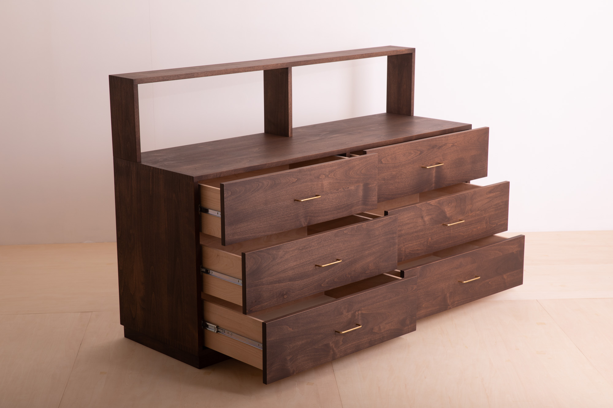 特色のウォールナットを選ばれました。真鍮の取っ手が同じで、木目もはっきりと見え統一感があります。